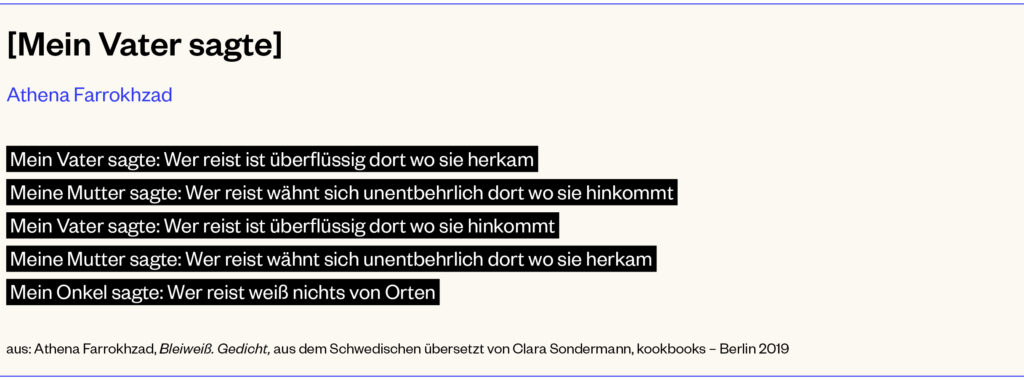 Inspirations-Stopp 2: „[Mein Vater sagte]“ von Athena Farrokhzad